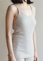 オーガニックコットンならではの、やわらかな肌触り。凸凹のあるリブ編みで、とにかくよく伸びます。筒型に製品の幅を作ってから裁断しているので、サイドに縫い目がありません。