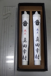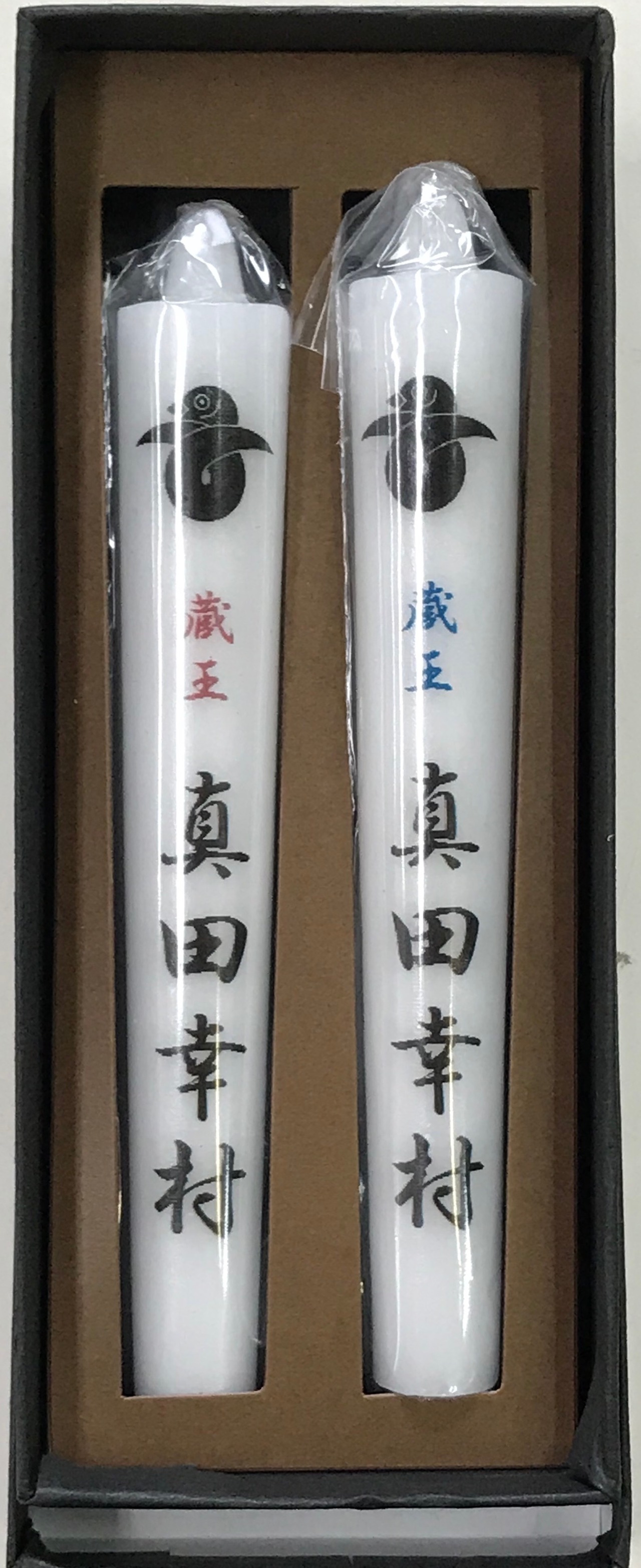 真田幸村の子供を伊達政宗と片倉小十郎が、大切に保護した史実からデザインされた仙台真田絵ろうそく。