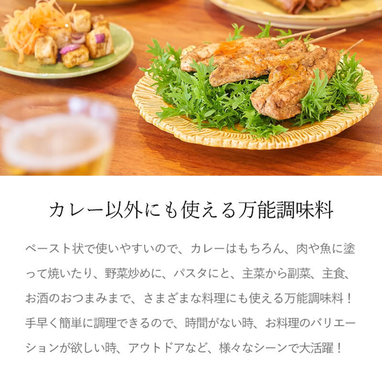 スリランカで母から子に伝わる18種類以上のスパイスやハーブ、香味野菜を配合。旨味がギュッと凝縮されています。カレー以外にも、肉や魚に塗って焼いたり、野菜炒めに、パスタにと、様々なお料理に使えます。オリジナルレシピ付きで、初めて手に取る方にも安心です。