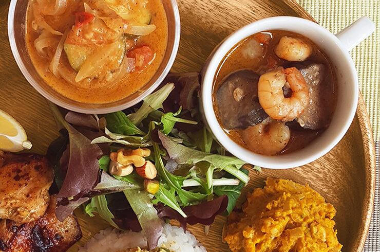 時間をかけて煮込む欧風カレーと違い、炒めた具材にからめ、サッと火を通すだけ。本場のスリランカカレーのように手早く調理し、スパイスとハーブの豊かな香りをお楽しみください。