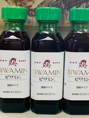 ビワミンは、筑後平野でとれたぶどうの王様巨峰を木桶で丁寧に発酵熟成させたワイン酢と米酢を主原料にビワの葉エキス、ビタミン、カルシウム、ハチミツ、ローヤルゼリー等を加え、各種成分の栄養バランスを考えて開発されました。 現代人の誤った食生活を正し、美容と健康にお役立てください。 味にも工夫をこらしてありますので小さなお子様から大人までおいしい飲料として、調味料としてご利用ください。