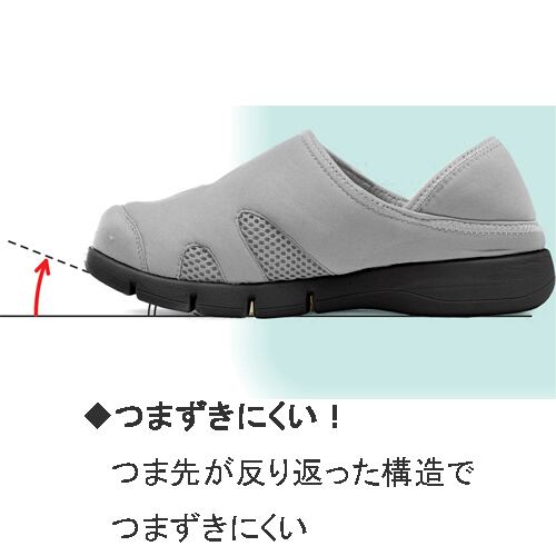 3.つま先はそりあがった形状になっており、つまづきにくい構造