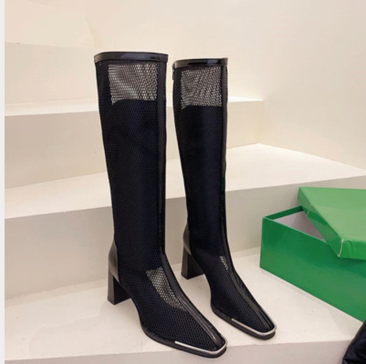 涼しい/ブーツ/女性/夏/新しいデザイン/メッシュ/通気/韓国風/薄いスタイル/太いヒール/スクエアヘッド/ブーツ
