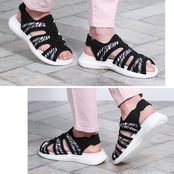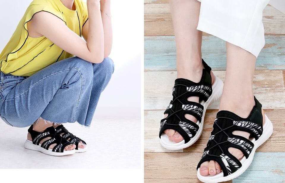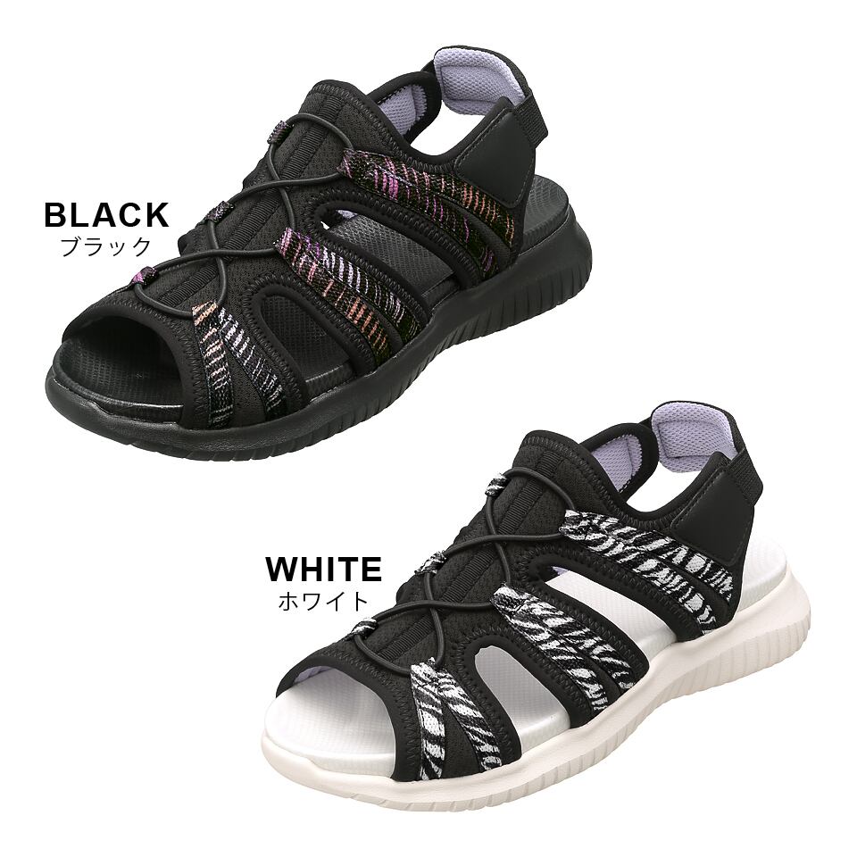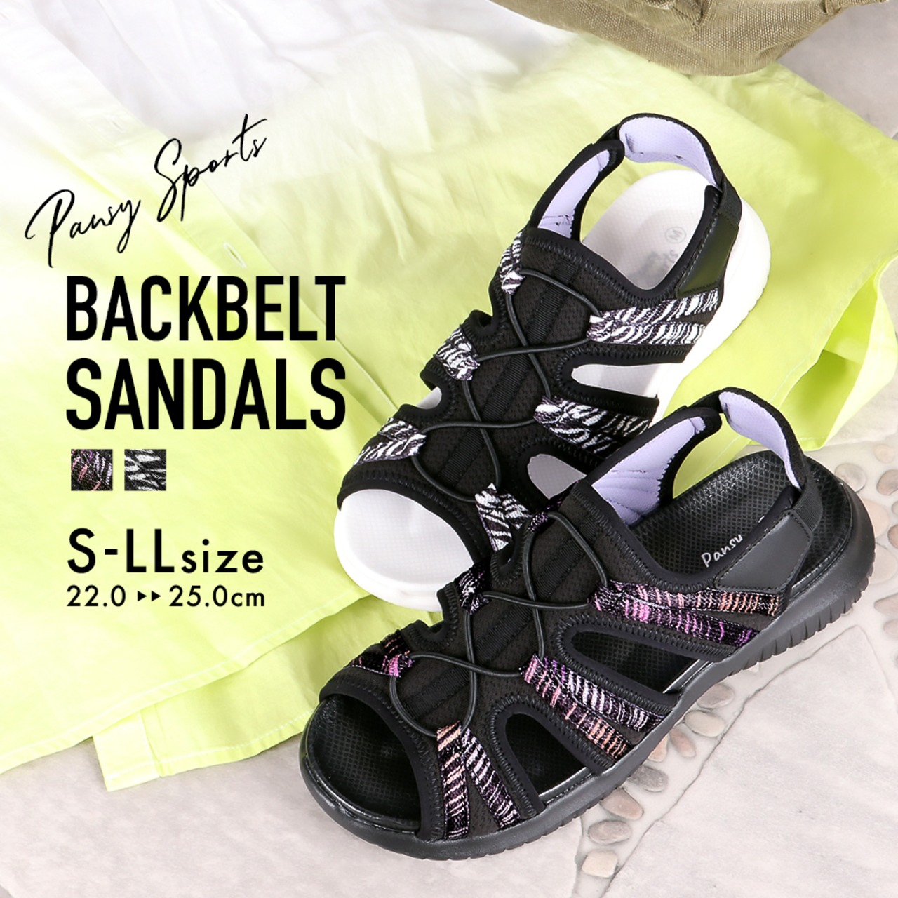 モノトーン×ゼブラ柄のスポーティなバックベルトサンダル!フィット感の良いニット素材と足に沿う形状に設計されたクッションインソールで安定感のある歩き心地です。