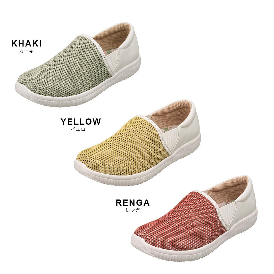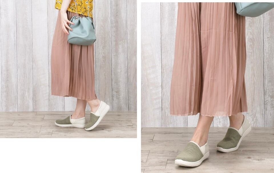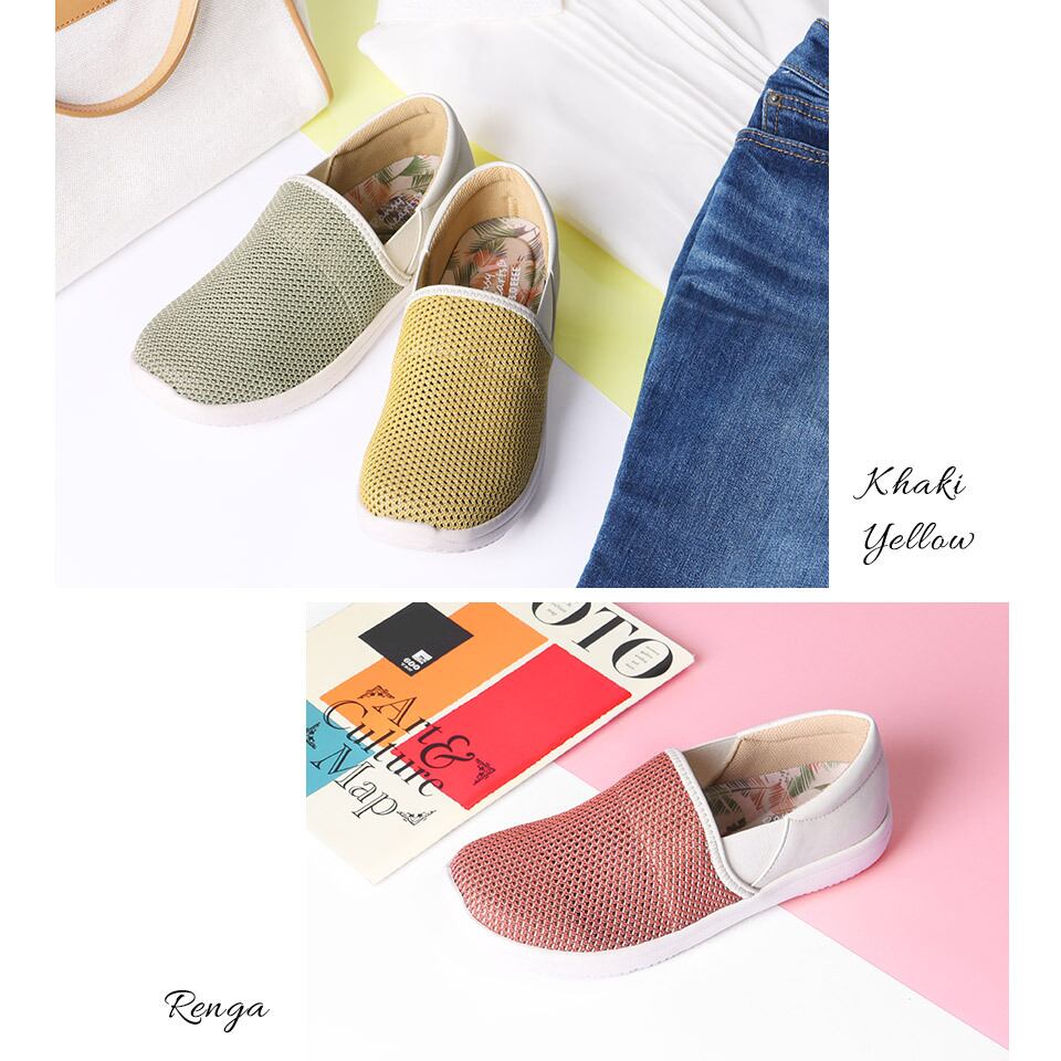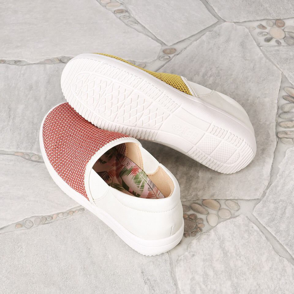 コンビカラーが足元を軽やかに彩る、スリッポンシューズ!メッシュ素材とソフトインソールが足に優しくフィットします。