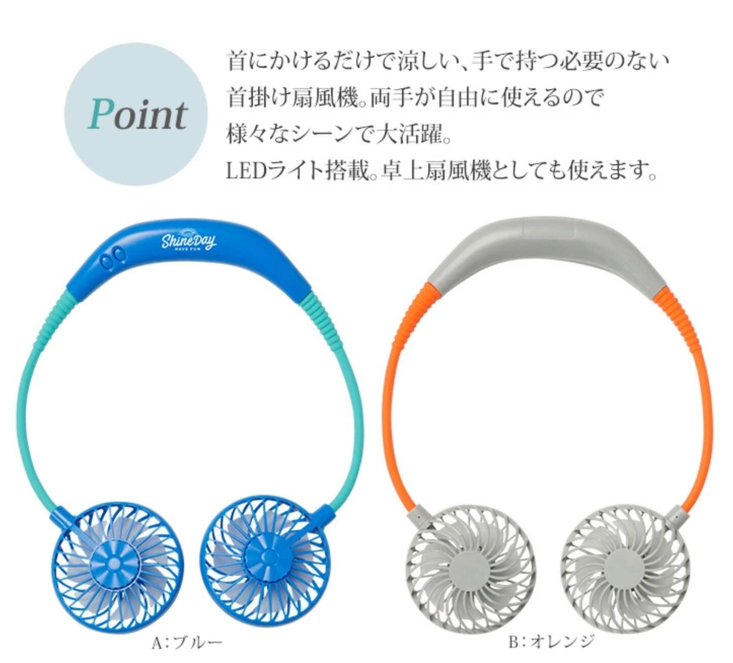 【Pukana】 ネックファン 全2種 扇風機 首掛け 卓上 LEDライト 雑貨 夏 冷却 涼しい USB